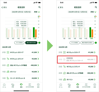 なお、ゆうちょレコの設定画面でも、集計対象外の明細の表示・非表示を切り替えられます。
